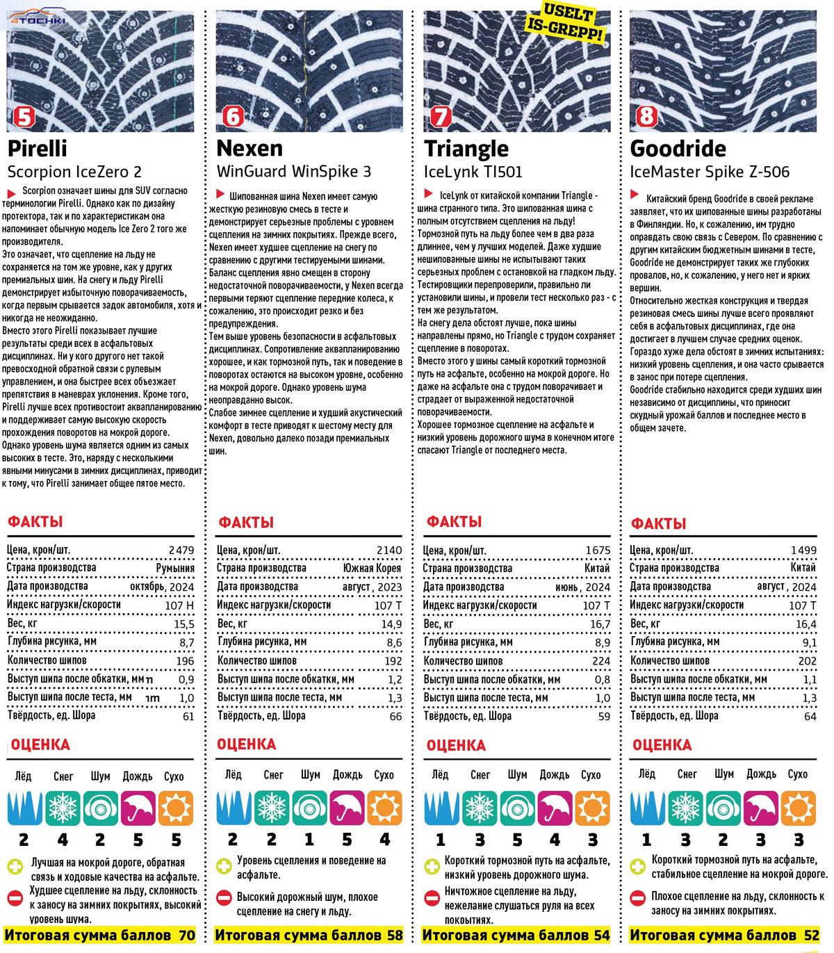 Но хотя Bridgestone и заняла высокое место в прошлогоднем тесте, эксперты шведского издания критиковали ее за неаккуратную ошиповку. Шипы были направлены в разные стороны и в некоторых случаях выпадали. Вскоре после этого Bridgestone остановила производство этих шипованных шин, и доступность Spike-03 к зимнему сезону 2025/2026 года остается под вопросом.
