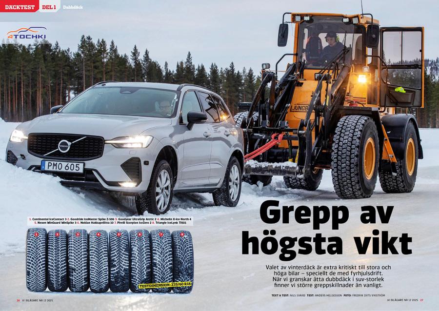 Чтобы узнать, какие производители шин справились с этой задачей лучше, редакция шведского журнала Vi Bilägare в этом году решила протестировать 18-дюймовые шипованные шины для популярного кроссовера Volvo XC60. Тестовый типоразмер 235/60R18 также подходит для Audi Q5, Mercedes GLC, Honda CR-V, Mazda CX-60, Hyundai Ioniq 5 и других автомобилей категории SUV.